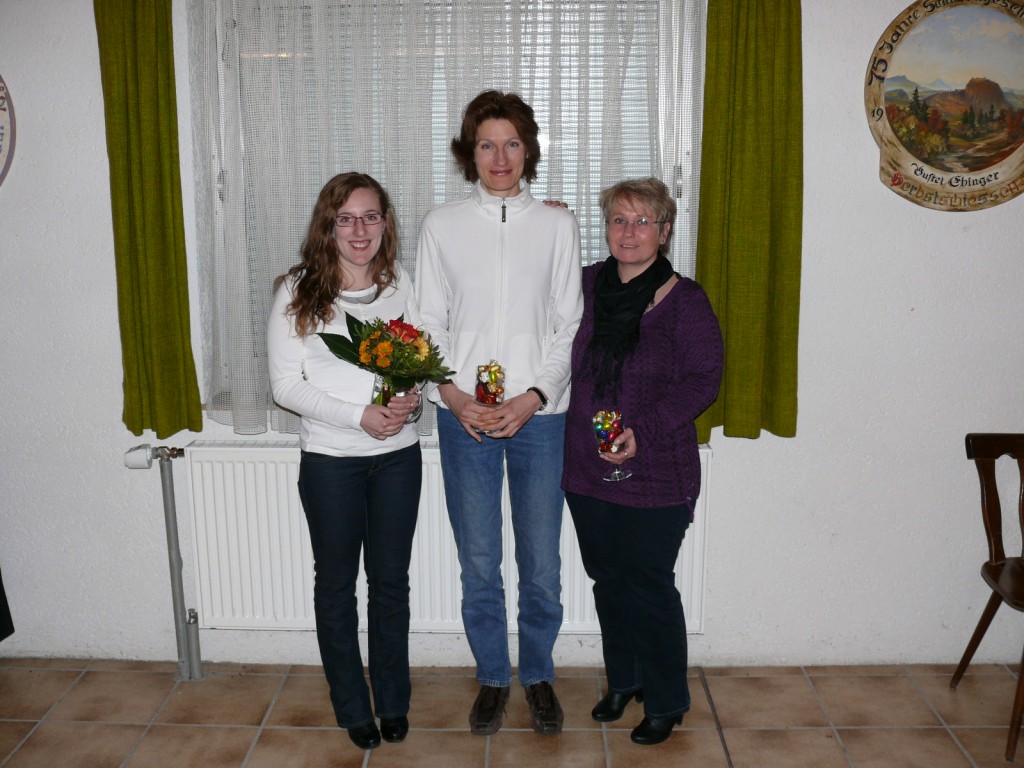 Für ihren 2. Platz in der Mannschaft Lupi Finale Damenfernwettkampf wurden von links nach rechts Anna Ossola, Manuela Steinke und Sigrun Eichman geehrt.
