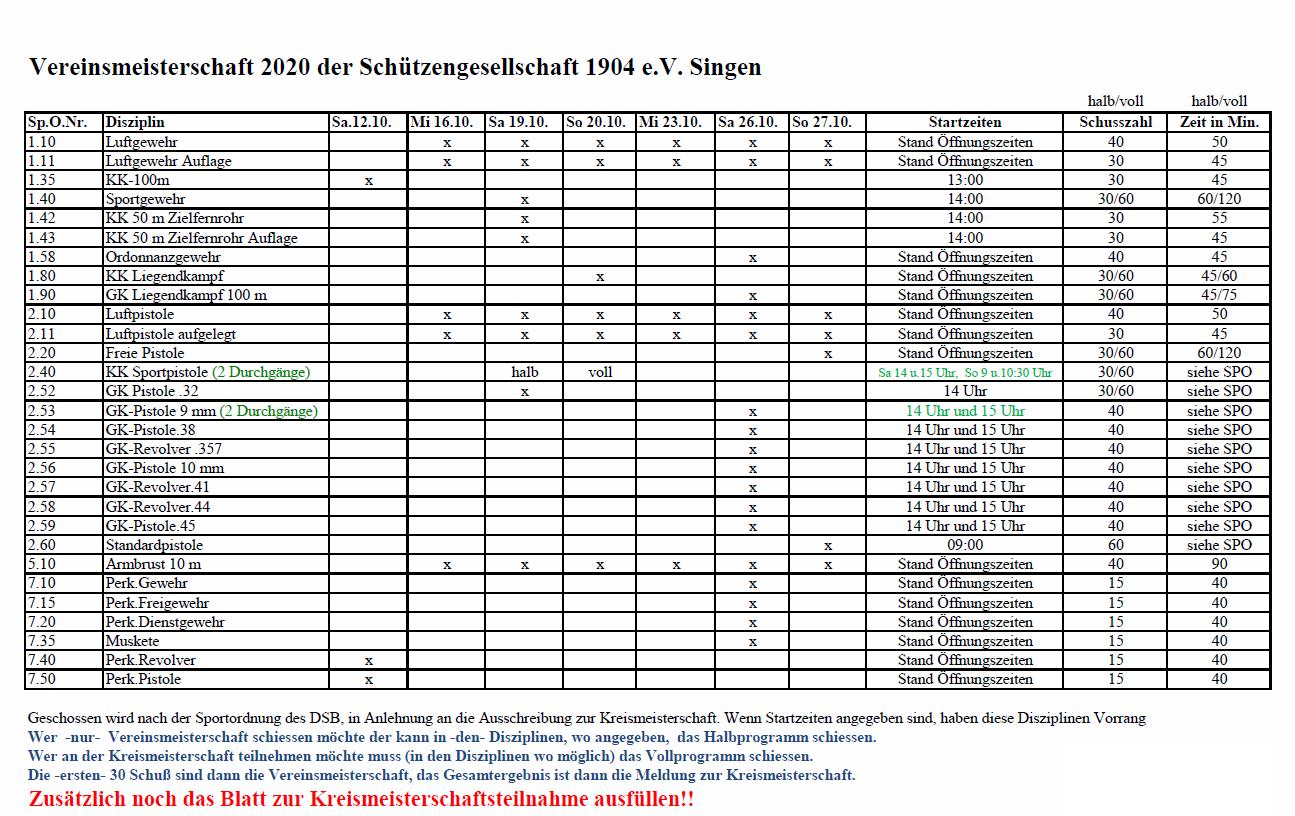 Anbei der Terminplan der Vereinsmeisterschaft